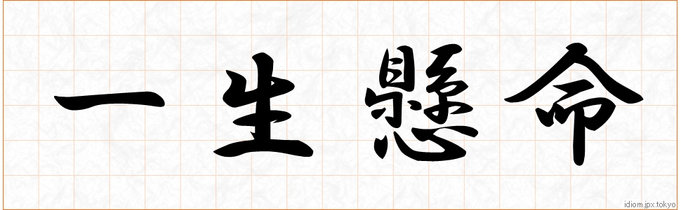 一 生 懸 命 (いっしょうけんめい)Kanji et modèles d’écriture |