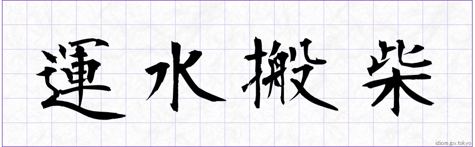 運 水 搬 柴 (うんすいはんさい)Kanji et modèles d’écriture |