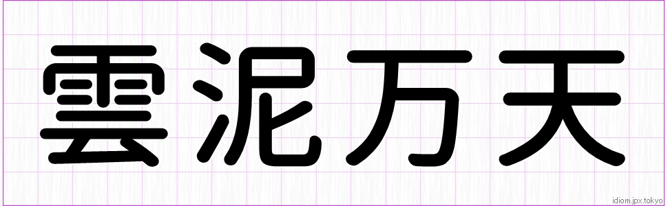 雲 泥 万 天 (うんでいばんてん)Kanji et modèles d’écriture |