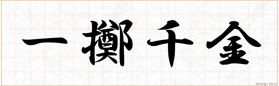 一 擲 千 金 (いってきせんきん)Kanji et modèles d’écriture |