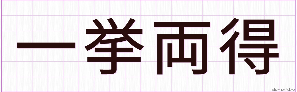 一 挙 両 得 (いっきょりょうとく)Kanji et modèles d’écriture |
