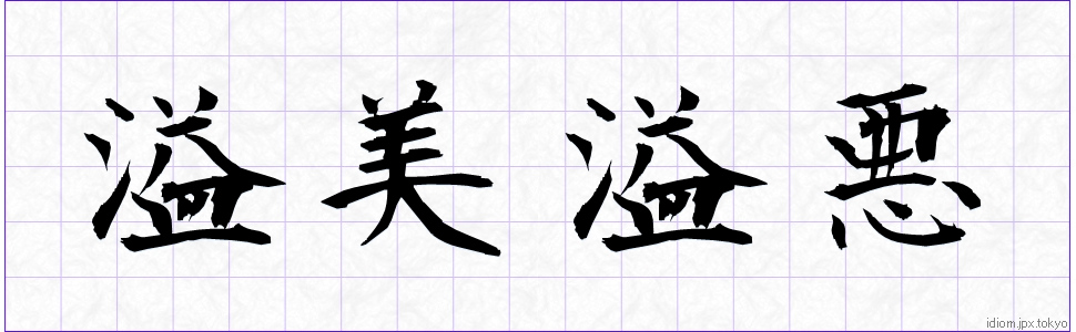 溢 美 溢 悪 (いつびいつあく)Kanji et modèles d’écriture |