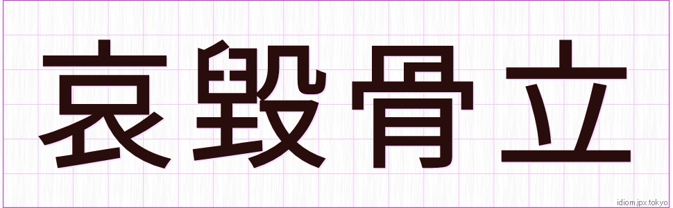 哀 毀 骨 立 (あいきこつりつ)Kanji et modèles d’écriture |
