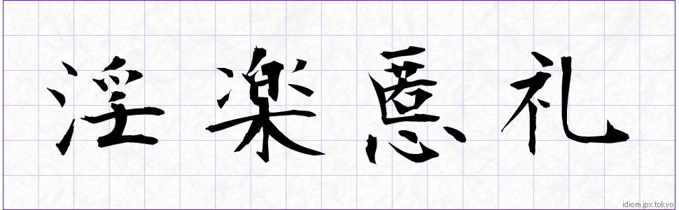 淫 楽 慝 礼 (いんがくとくれい)Kanji et modèles d’écriture |