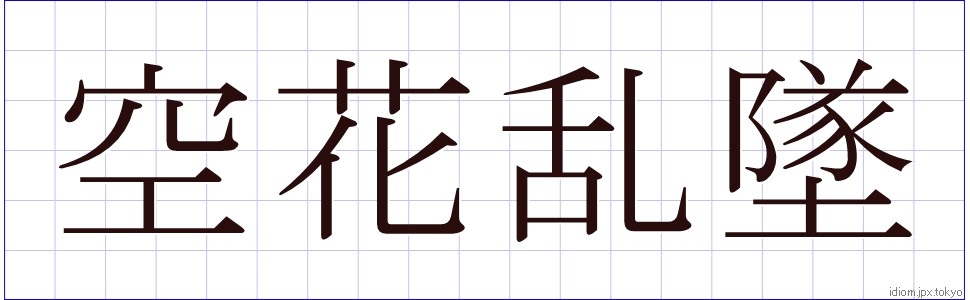 空 花 乱 墜 (くうげらんつい)Kanji et modèles d’écriture |