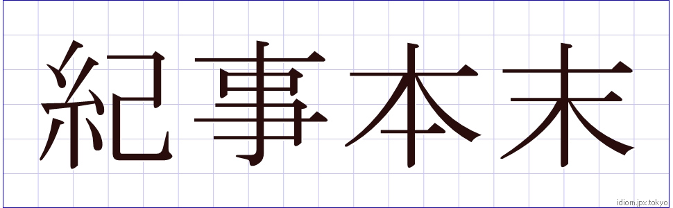 紀 事 本 末 (きじほんまつ)Kanji et modèles d’écriture |