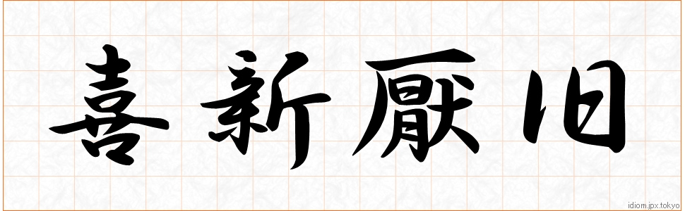 喜 新 厭 旧 (きしんえんきゅう)Kanji et modèles d’écriture |