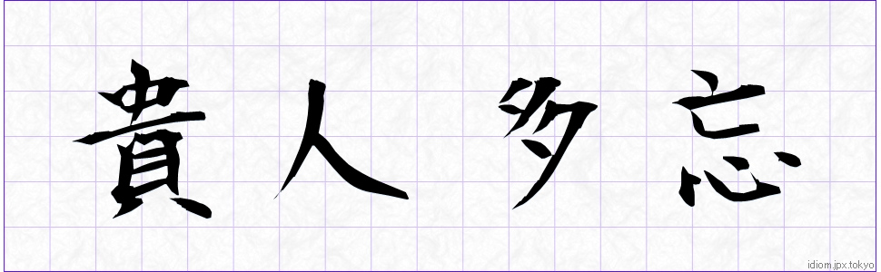 貴 人 多 忘 (きじんたぼう)Kanji et modèles d’écriture |