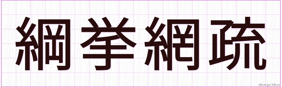 綱 挙 網 疏 (こうきょもうそ)Kanji et modèles d’écriture |