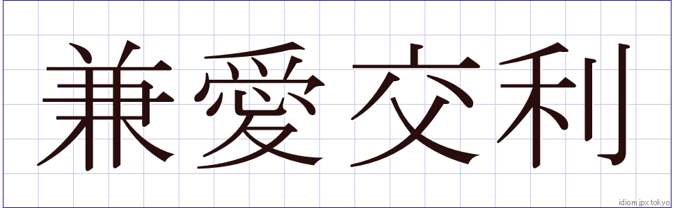 兼 愛 交 利 (けんあいこうり)Kanji et modèles d’écriture |