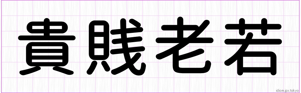 貴 賎 老 若 (きせんろうにゃく)Kanji et modèles d’écriture |