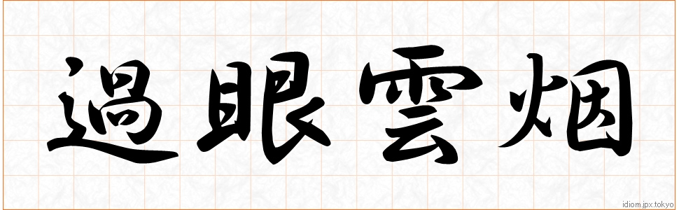 過 眼 雲 烟 (かがんうんえん)Kanji et modèles d’écriture |