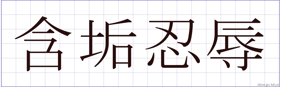 含 垢 忍 辱 (がんこうにんじょく)Kanji et modèles d’écriture |