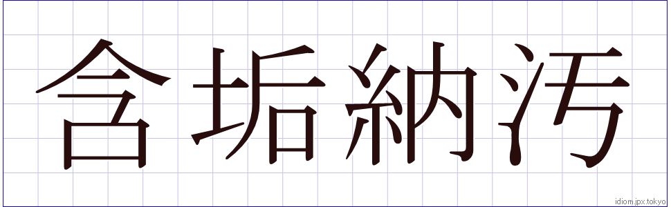 含 垢 納 汚 (がんこうのうお)Kanji et modèles d’écriture |