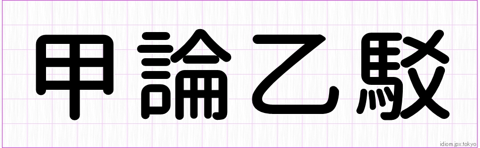 甲 論 乙 駁 (こうろんおつばく)Kanji et modèles d’écriture |