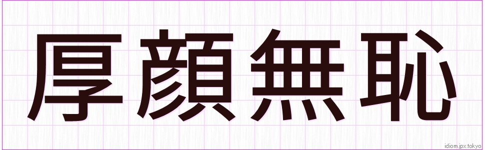 厚 顔 無 恥 (こうがんむち)Kanji et modèles d’écriture |