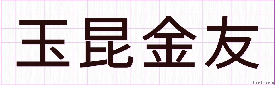 玉 昆 金 友 (ぎょっこんきんゆう)Kanji et modèles d’écriture |
