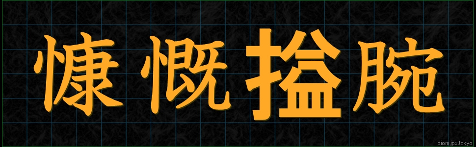 慷 慨 搤 腕 (こうがいやくわん)Kanji et modèles d’écriture |