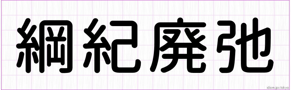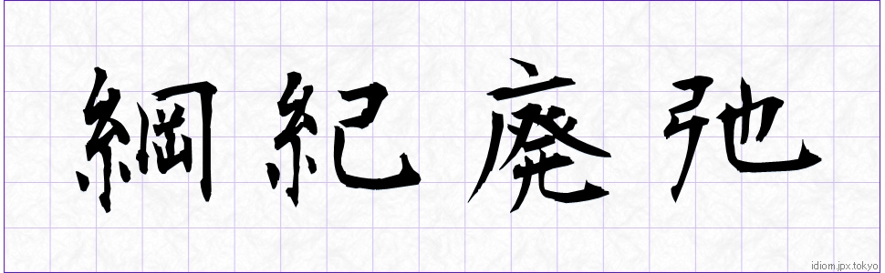 綱 紀 廃 弛 (こうきはいし)Kanji et modèles d’écriture |