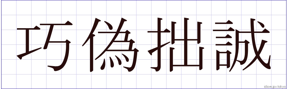 巧 偽 拙 誠 (こうぎせっせい)Kanji et modèles d’écriture |
