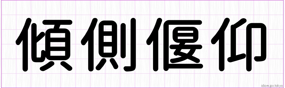 傾 側 偃 仰 (けいそくえんぎょう)Kanji et modèles d’écriture |