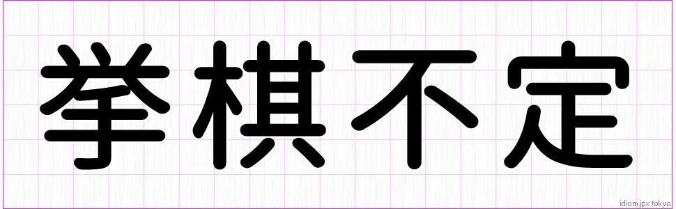挙 棋 不 定 (きょきふてい)Kanji et modèles d’écriture |