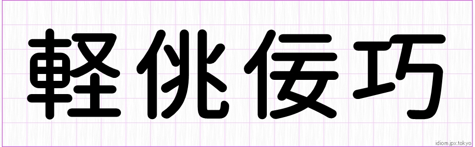軽 佻 佞 巧 (けいちょうねいこう)Kanji et modèles d’écriture |
