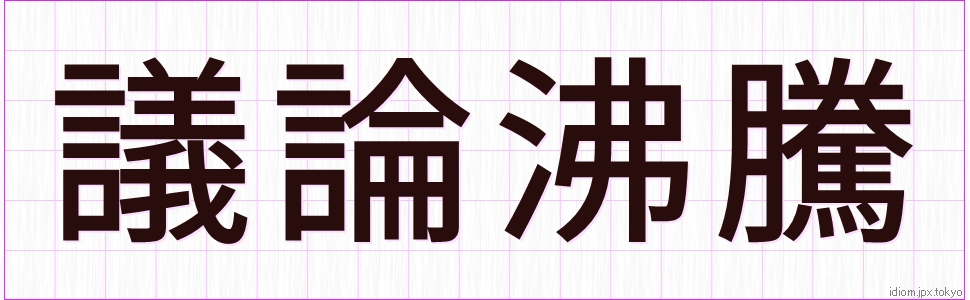 議 論 沸 騰 (ぎろんふっとう)Kanji et modèles d’écriture |