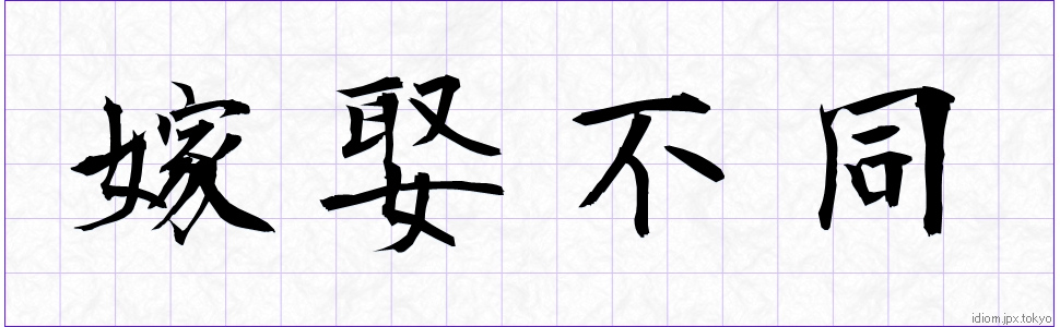 嫁 娶 不 同 (かしゅふどう)Kanji et modèles d’écriture |