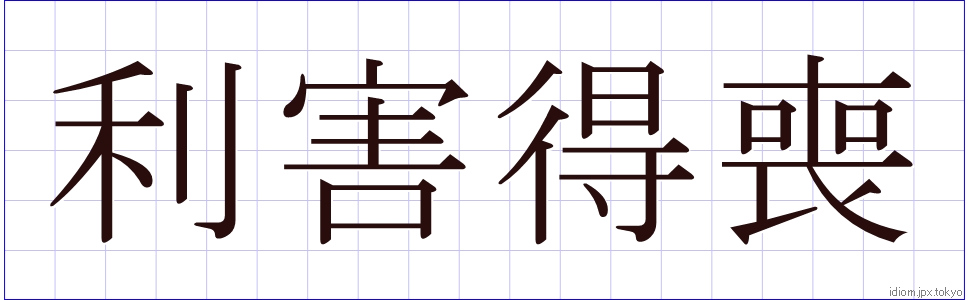 利 害 得 喪 (りがいとくそう)Kanji et modèles d’écriture |