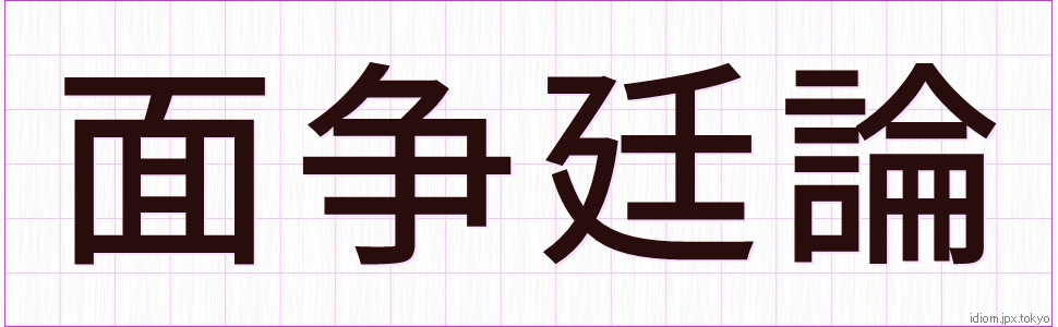 面 争 廷 論 (めんそうていろん)Kanji et modèles d’écriture |