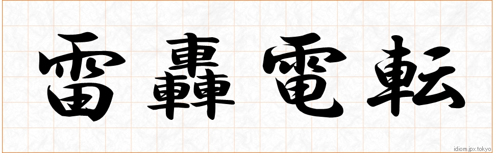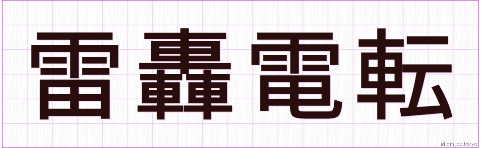 雷 轟 電 転 (らいごうでんてん)Kanji et modèles d’écriture |