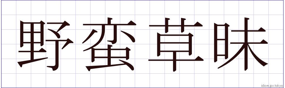 野 蛮 草 昧 (やばんそうまい)Kanji et modèles d’écriture |