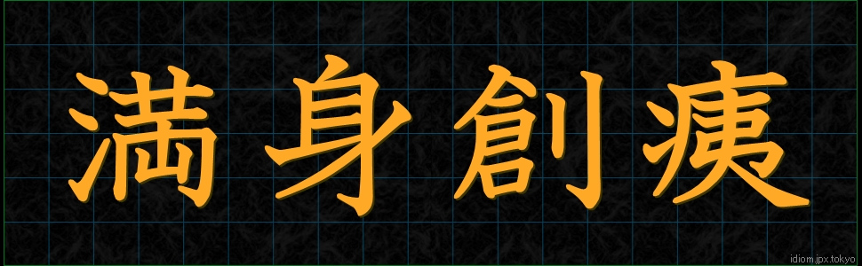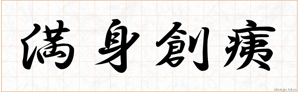 満 身 創 痍 (まんしんそうい)Kanji et modèles d’écriture |