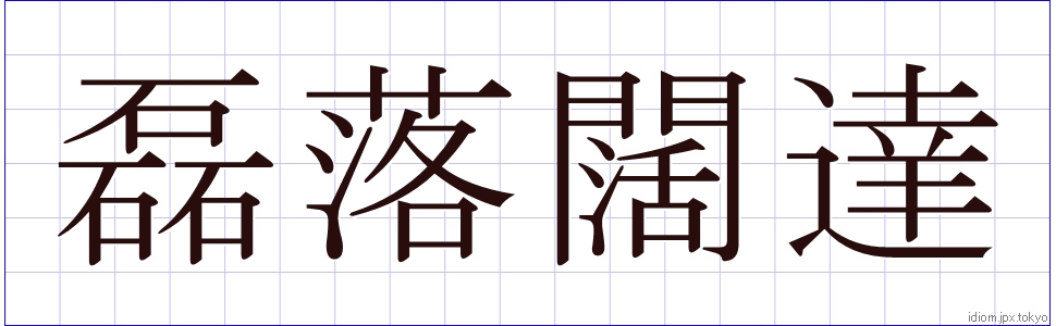磊 落 闊 達 (らいらくかったつ)Kanji et modèles d’écriture |
