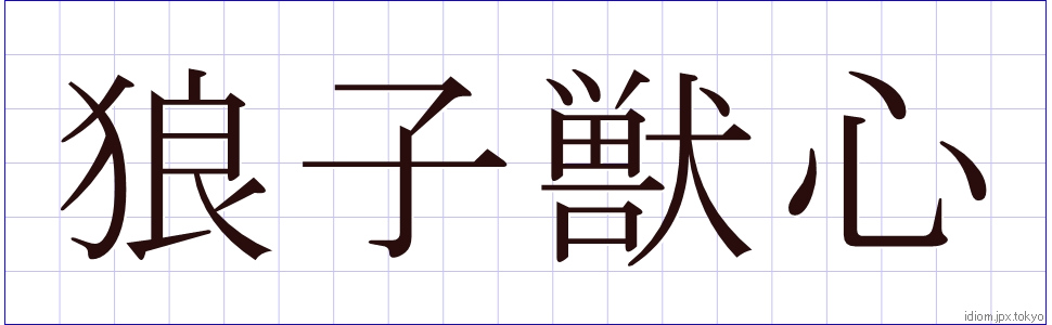 狼 子 獣 心 (ろうしじゅうしん)Kanji et modèles d’écriture |