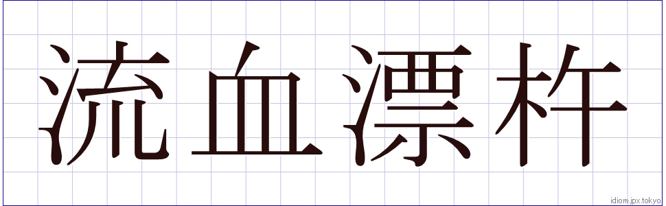 流 血 漂 杵 (りゅうけつひょうしょ)Kanji et modèles d’écriture |