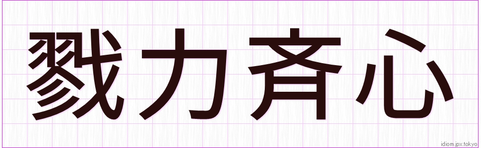 戮 力 斉 心 (りくりょくせいしん)Kanji et modèles d’écriture |