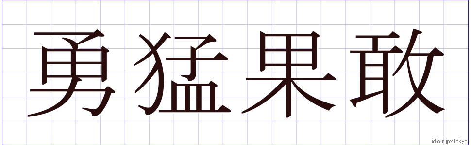 勇 猛 果 敢 (ゆうもうかかん)Kanji et modèles d’écriture |