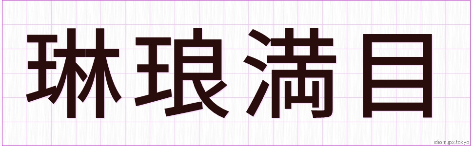 琳 琅 満 目 (りんろうまんもく)Kanji et modèles d’écriture |
