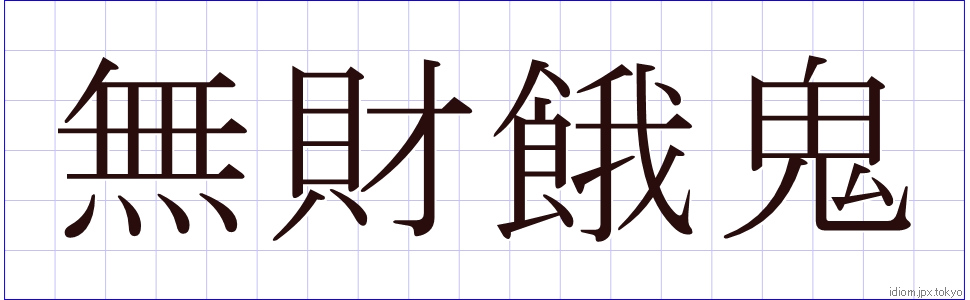 無 財 餓 鬼 (むざいがき)Kanji et modèles d’écriture |