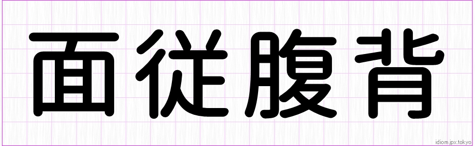 面 従 腹 背 (めんじゅうふくはい)Kanji et modèles d’écriture |
