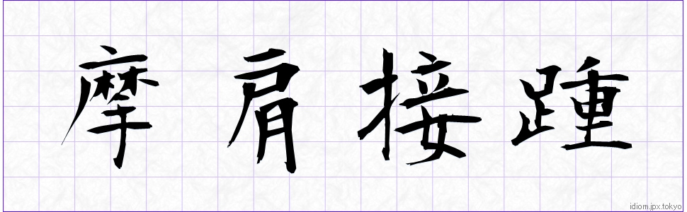 摩 肩 接 踵 (まけんせっしょう)Kanji et modèles d’écriture |