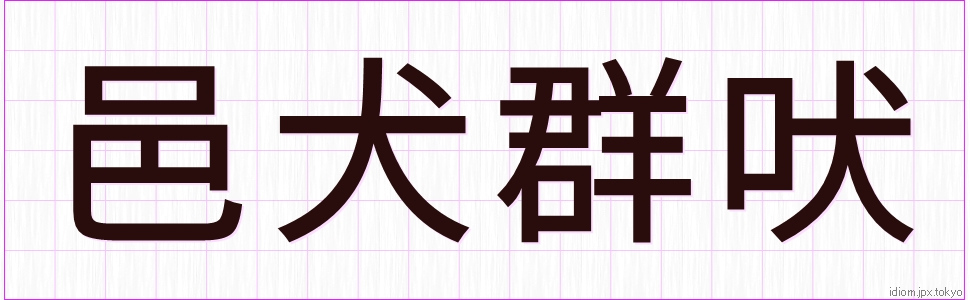 邑 犬 群 吠 (ゆうけんぐんばい)Kanji et modèles d’écriture |