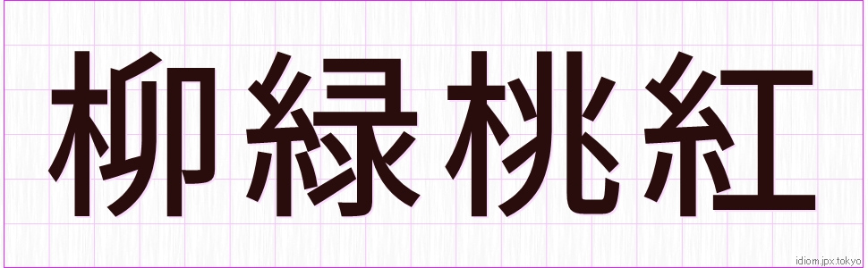 柳 緑 桃 紅 (りゅうりょくとうこう)Kanji et modèles d’écriture |