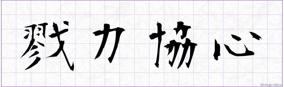 戮 力 協 心 (りくりょくきょうしん)Kanji et modèles d’écriture |