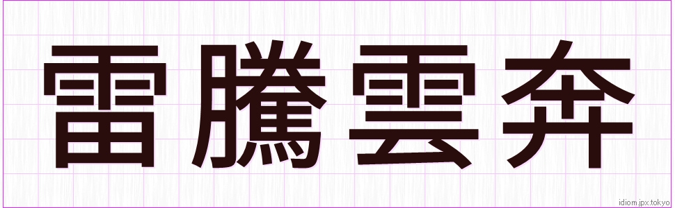 雷 騰 雲 奔 (らいとううんぽん)Kanji et modèles d’écriture |