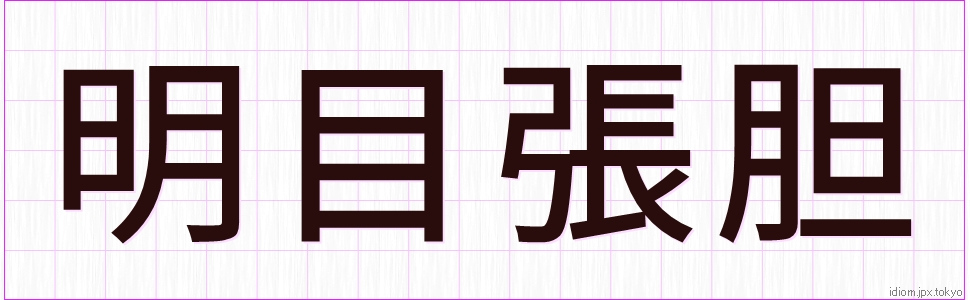 明 目 張 胆 (めいもくちょうたん)Kanji et modèles d’écriture |