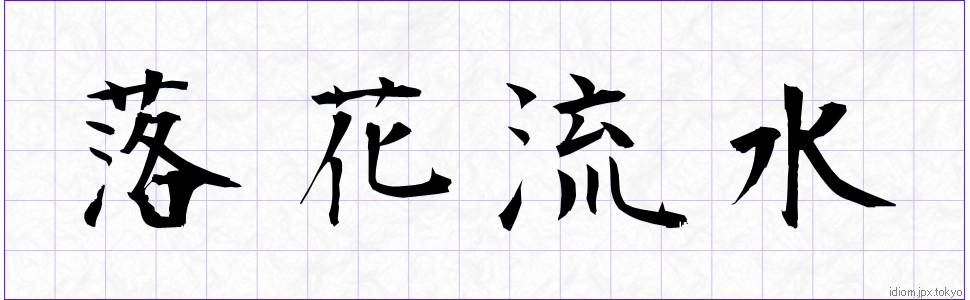 落 花 流 水 (らっかりゅうすい)Kanji et modèles d’écriture |