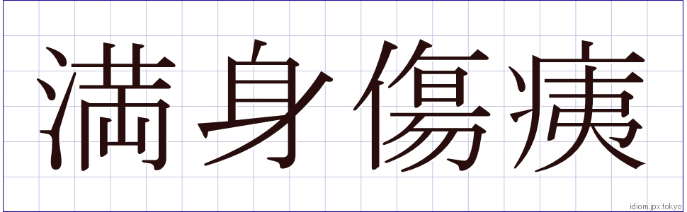 満 身 傷 痍 (まんしんしょうい)Kanji et modèles d’écriture |